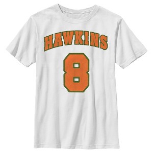 Turn your world upside down with this officially licensed Stranger Things Season 4 Boys' Graphic T-Shirt! Your favorite 1980s-inspired Netflix television series is taking you back to Hawkins, Indiana to fight the evil creature, Vecna, who is terrorizing Max and other traumatized members of the town! Blast your favorite song and wear this awesome tee to fight the curse of Vecna today. This boys' tee features a cool graphic of the Hawkins High School sports team with the number 8 printed in orange!