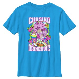 Who's ready for a berry special treat? You are! Enjoy sweet fashion with this officially licensed Strawberry Shortcake Chasing Berries Boys' Graphic T-Shirt. Your favorite greeting card-turned-pop culture sensation is here to win your heart with fun adventures in Strawberry-land. This colorful tee features a whimsical graphic of Strawberry Shortcake in bright colors holding her dear pet Custard in her arms as they are surrounded by a splash of colors and shapes that make them stand out! Combined with a strawberry-themed frame and the phrase "Chasing Rainbows", this tee will bring happiness wherever you wear it!
