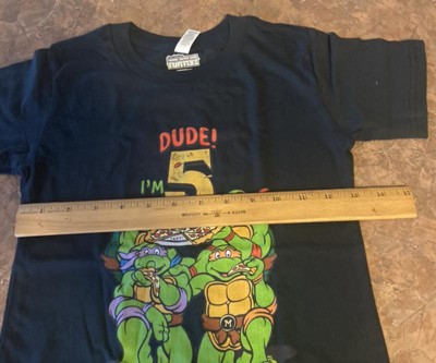 Boy's Teenage Mutant Ninja Turtles 5th Birthday Pizza Party T-Shirt - Navy Blue - Medium