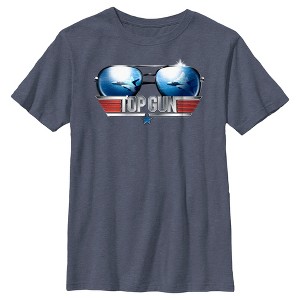 Do you have what it takes to claim the Top Gun Trophy? Then suit up and get ready to join the most elite Navy pilots around like Maverick and Iceman with this officially licensed Top Gun Aviator Sunglasses Fighter Jet Reflection Boys' Graphic T-Shirt! Dress in style and rep your favorite aviator movie with this design that features a classic pair of aviator sunglasses with a reflection of two fighter jets, along with the Top Gun logo below.