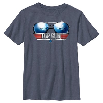 Do you have what it takes to claim the Top Gun Trophy? Then suit up and get ready to join the most elite Navy pilots around like Maverick and Iceman with this officially licensed Top Gun Aviator Sunglasses Reflection Boys' Graphic Performance T-Shirt! Dress in style and rep your favorite aviator movie with this design that features a classic pair of aviator sunglasses with a reflection of the clouds and a fighter jet, along with the Top Gun logo below.