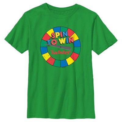 Twist up your wardrobe with one of these fun officially licensed Twister styles! You'll be sure to get twisted up in excitement over this apparel that celebrates your favorite childhood game! This Boys' Twister Spin To Win Graphic T-Shirt features the colorful Twister spinner wheel in a distressed style along with the phrase: "Spin To Win" and the classic board game logo printed across the front. Get ready to add a pop of color to your outfit with this new Hasbro apparel!