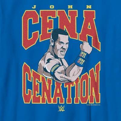 • Strut your stuff with this stylish new boys' t-shirt that is perfect for every occasion! Featuring John Cena flexing his arm out with his name in bold letters at the top text and "Cenation," at the bottom.