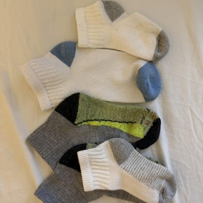 A: Hello - Thank you for contacting us about the Boys' 10pk Ankle Socks - Cat & Jack™ White/Gray/Black. Please see the below specifications that can also be found on Target.com. Have a great weekend and let us know if you have any additional questions.