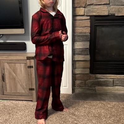 Bring a sprinkle of seasonal magic to your child's sleepwear with this 2-Piece Plaid Holiday Long-Sleeve Button-Down Pajama Set from Cat & Jack™. This pajama set includes a long-sleeve, button-down pajama shirt and pull-on pajama pants, both crafted from 100% recycled polyester fabric for all-night comfort. Both the pieces in this PJ set feature a plaid print, making them great for the holiday season. Featuring a collared neckline and a front button-down design, the pajama shirt is accompanied by pajama pants with a comfort elastic for a snug, secure fit.