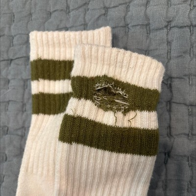 These socks are soft and reminiscent of the 80s style tube socks/gym socks. All four pairs are a good thickness and seem like they will stand the test of time with an active kid. The colors around the top are solid.