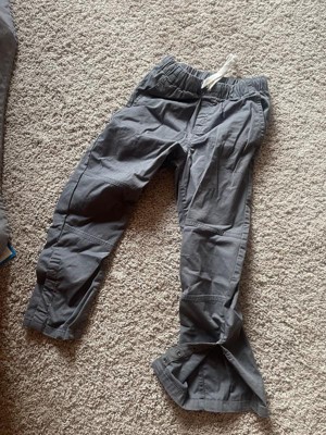 Add comfy style to your kid's everyday wardrobe with these Adaptive Straight Fit Pull-On Woven Pants from Cat & Jack™. These gray pants are made from cotton fabric with added spandex in a straight-fit cut for comfortable wear. The pants feature functional side pockets and faux back pockets for an authentic look that offers a comfortable feel. Designed in a mid-rise cut, these full-length pants feature a flexible drawstring closure at the waist, plus snap closures at the leg openings for greater ease of dressing.