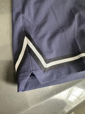 Standard material for boys basketball shorts. Has a mesh lining inside the shorts. Stripped pattern alone the edge of the shorts. Breathable to keep cool in hot weather. Ties at the waist for comfortable wear.