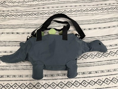 Super cute for dino loving kid, spacious and multi carry with straps but there are quality control issues with the stitching.