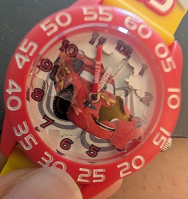 Boys' Disney Cars Lightning McQueen Plastic 3D Strap Time Teacher Watch- Yellow