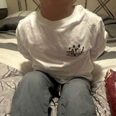 [This review was collected as part of a promotion.] Got this boys long sleeve graphic T shirt from cat & jack for my son.He is wearing size xl and it fits him good.He is 11 years old and wear xl or large husky size.This shirt is white in color.It have Venice beach text with palm tree graphics on the front and huge fun graphic on the back.He can wear this shirt with any color jeans or shorts.He said this shirt is cool,soft and comfy.