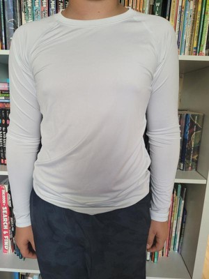 Great long sleeve shirt option. Athletic material and very soft. Could be layered under any shirt or worn alone. Runs a bit on the smaller side. Really like this option for kiddos in outdoor sports during colder months.