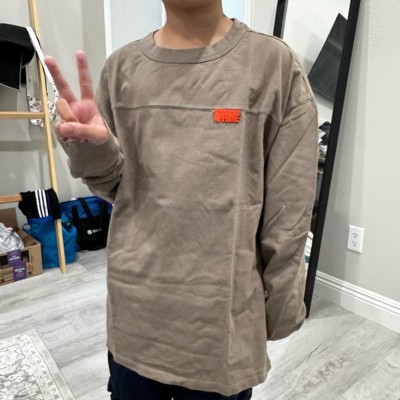 [This review was collected as part of a promotion.] Cat & Jack Boys' Long Sleeve Oversized Patch t shirt is such a great deal for the price point. It is ridiculously soft, has room to grow over the winter months, and is very low key/not cutesy. It looks like something from the art class line for tweens. My son is 4'10", approx 83 lbs, and he's wearing the Large (10/12). It's sized accurately as the style is oversized/relaxed. He loved the feel and fit of the shirt. He's at that selective tween stage (almost 11) and was visibly happy with the shirt. I may go back for additional colors!