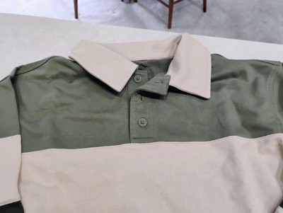 Boys' Long Sleeve Striped Rugby Shirt - art class™ Dark Olive Green L