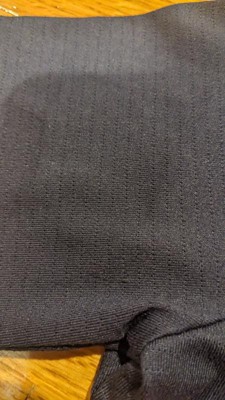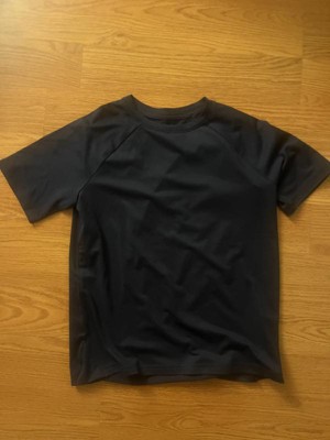 This navy blue T-shirt was made of a soft polyester material. It was breathable and rapidly dried. He has wore it a handful of times and it is pretty true to size. He is tall for his age and this was long enough but looked bulky on him. He liked that it was a solid color and was a uniform color so he could wear it to school. There is a pattern of lines every quarter of an inch throughout the shirt. This shirt looked great with his athletic pants but could also be used with some khakis.