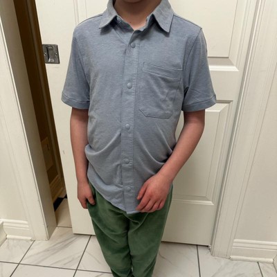 My kid loves this shirt! It's comfortable, flexible, and comes across as "dressier" than it is. Since it's an adventure/athletic shirt from the All In Motion activewear brand, it has some basic moisture wicking and anti-wrinkle properties. Perfect for a highly active child.
