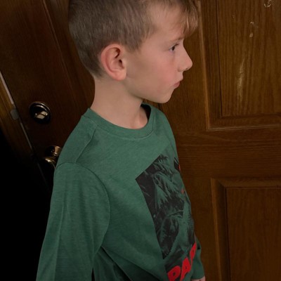 [This review was collected as part of a promotion.] This was a roaring party shirt. We purchased this shirt for my son to wear at his cousins Dino themed party. The graphics on the shirt hit the theme perfectly. My son is 10 but very petite so we went with medium size 8 and it fit him with room to grow. We did layer it because it’s getting chilly out. The fabric is so soft which my son really liked and the color is such a nice green.