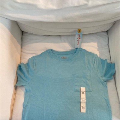 Refresh your child’s everyday wardrobe with this Short-Sleeve Pocket T-Shirt from Cat & Jack™. This pullover T-shirt is made from midweight cotton jersey fabric for all-day comfortable wear. Designed in a solid hue with a crew neckline, regular fit, below-waist length and short sleeves, it also has a chest patch pocket for classic style.