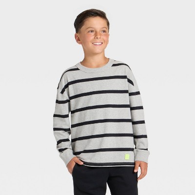 Boys' Short Sleeve Striped Oversized T-Shirt - Cat & Jack™ Charcoal Gray