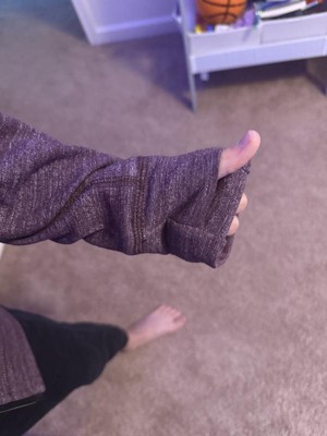 [This review was collected as part of a promotion.] My son is 8 and a bit short for his age with a slim build. He tried on this zip up hoodie in a size 8. It definitely was oversized on him, especially in the arms and lengthwise. It is wearable for sure, giving him time to grow into it. The thumb holes are a nice detail making it even cozier. This is a great stylish layering piece and could easily be used in place of jacket for fall and spring! I received an incentive to write this review.