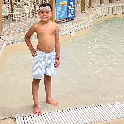 My little guy loves his new swim trunks!