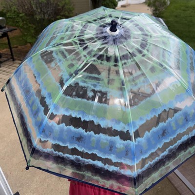 [This review was collected as part of a promotion.] This child’s tie-dye umbrella is super cute. It’s made of clear and blue colors. It’s the perfect size for a child and includes a rounded handle for easy gripping. This umbrella is easy to use, opens and stays in place. My child is also able to close it when needed. This is made of thicker plastic which is great because it will get tossed around a lot on the way to school. This was definitely a hit. I received an incentive to write this review.