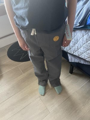 Add comfy style to your kid's everyday wardrobe with these Adaptive Straight Fit Pull-On Woven Pants from Cat & Jack™. These gray pants are made from cotton fabric with added spandex in a straight-fit cut for comfortable wear. The pants feature functional side pockets and faux back pockets for an authentic look that offers a comfortable feel. Designed in a mid-rise cut, these full-length pants feature a flexible drawstring closure at the waist, plus snap closures at the leg openings for greater ease of dressing.