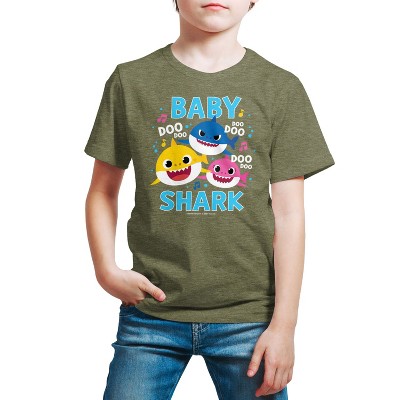 Boys' Baby Shark Today I Feel Grid Short Sleeve Graphic T-Shirt - Heather Military Green - Medium