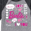 Barbie - Barbie Valentine's Collage - Toddler And Youth Raglan Graphic T-Shirt - Step into the glamorous pink world of Barbie with our officially licensed graphic garments for the fashion-forward! Whether you dream of being a fashion designer, a mermaid princess, or a world-traveling explorer, our garments bring Barbie's world to life with vibrant colors and playful prints. Crafted with quality materials and attention to detail, each piece ensures comfort and durability for all-day play. Express your unique sense of style and imagination with our exclusive Barbie graphic apparel!