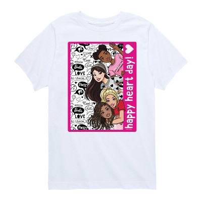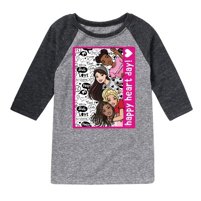 Barbie - Happy Heart Day - Toddler And Youth Long Sleeve Graphic T-Shirt - Step into the glamorous pink world of Barbie with our officially licensed graphic garments for the fashion-forward! Whether you dream of being a fashion designer, a mermaid princess, or a world-traveling explorer, our garments bring Barbie's world to life with vibrant colors and playful prints. Crafted with quality materials and attention to detail, each piece ensures comfort and durability for all-day play. Express your unique sense of style and imagination with our exclusive Barbie graphic apparel!