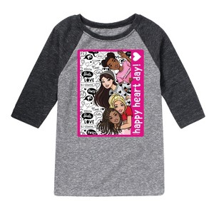 Barbie - Happy Heart Day - Toddler And Youth Raglan Graphic T-Shirt - Step into the glamorous pink world of Barbie with our officially licensed graphic garments for the fashion-forward! Whether you dream of being a fashion designer, a mermaid princess, or a world-traveling explorer, our garments bring Barbie's world to life with vibrant colors and playful prints. Crafted with quality materials and attention to detail, each piece ensures comfort and durability for all-day play. Express your unique sense of style and imagination with our exclusive Barbie graphic apparel!