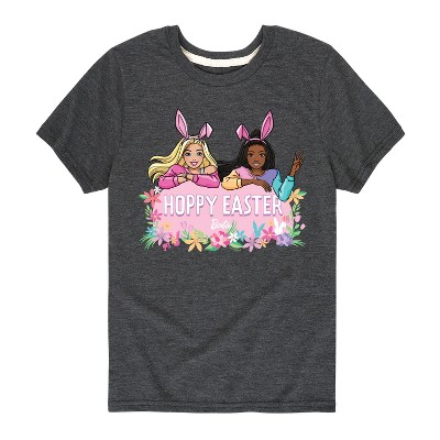 Boys' Barbie Pink Daisy Pattern Logo Short Sleeve Graphic T-Shirt - Heather Charcoal - Medium