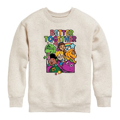 Boys' Barney Cgi Grid Graphic Long Sleeve Fleece Sweatshirt - Natural - Small