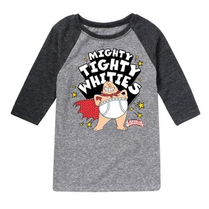 Captain Underpants - Mighty Tighty Whities - Toddler & Youth Raglan Graphic T-Shirt - Celebrate the essence of Universal's Captain Underpants with officially licensed apparel featuring unique designs crafted exclusively by Hybrid Apparel. Each piece brings beloved characters, iconic imagery, and memorable moments to life, offering Captain Underpants fans a one-of-a-kind way to showcase their passion.