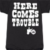 Case IH - Here Comes Trouble - Infant Baby One Piece - Case IH is the American brand that will take you back to your roots with the perfect offerings in farm apparel. Find the perfect gift idea for the farmer in your family. We live by the motto hard work, hard play, faith, and family. We are an official licensee of Case IH, International Harvester, and Farmall brand products. Search for Country Casuals to find our entire lineup of country themed apparel.