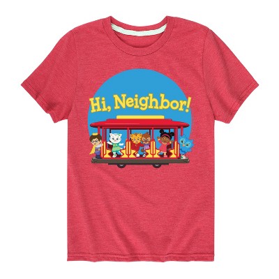 Daniel Tiger - Group Hi Neighbor - Youth Short Sleeve T-Shirt - Bring a dose of kindness, curiosity, and comfort to your day with Daniel Tiger’s Neighborhood graphic apparel. Featuring everyone’s favorite striped tiger, these fun and colorful designs celebrate the beloved PBS series known for its heartfelt life lessons, catchy songs, and positive messages. Whether it's learning how to manage big feelings or practicing empathy and friendship, each piece reflects the warmth and wisdom of Daniel’s world. Perfect for fans of all ages, this collection adds a friendly, feel-good touch to any wardrobe.