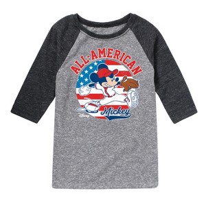 Disney - Americana - Mickey Americana Baseball - Toddler And Youth Raglan Graphic T-Shirt - Add a touch of magic to your wardrobe with this graphic apparel featuring iconic Disney designs. Showcasing beloved characters and classic imagery, each piece combines nostalgic charm with modern style—perfect for Disney fans of all ages. Whether you're headed to the parks or just adding whimsy to your everyday look, these graphics bring the magic to life.