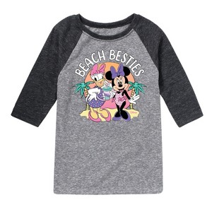 Mickey & Friends - Beach Besties - Toddler And Youth Raglan Graphic T-Shirt - Add a touch of magic to your wardrobe with this graphic apparel featuring iconic Disney designs. Showcasing beloved characters and classic imagery, each piece combines nostalgic charm with modern style—perfect for Disney fans of all ages. Whether you're headed to the parks or just adding whimsy to your everyday look, these graphics bring the magic to life.