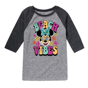 Mickey & Friends - Beach Vibes - Toddler And Youth Raglan Graphic T-Shirt - Add a touch of magic to your wardrobe with this graphic apparel featuring iconic Disney designs. Showcasing beloved characters and classic imagery, each piece combines nostalgic charm with modern style—perfect for Disney fans of all ages. Whether you're headed to the parks or just adding whimsy to your everyday look, these graphics bring the magic to life.