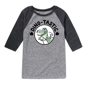Toy Story - Dinotastic - Toddler & Youth Raglan Graphic T-Shirt - Add a touch of magic to your wardrobe with this graphic apparel featuring iconic Disney designs. Showcasing beloved characters and classic imagery, each piece combines nostalgic charm with modern style—perfect for Disney fans of all ages. Whether you're headed to the parks or just adding whimsy to your everyday look, these graphics bring the magic to life.