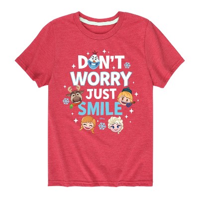 Disney Emoji - Don't Worry Be Emojis - Toddler And Youth Short Sleeve Graphic T-Shirt - Add a touch of magic to your wardrobe with this graphic apparel featuring iconic Disney designs. Showcasing beloved characters and classic imagery, each piece combines nostalgic charm with modern style—perfect for Disney fans of all ages. Whether you're headed to the parks or just adding whimsy to your everyday look, these graphics bring the magic to life.