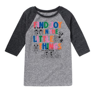 Mickey & Friends - Find Joy - Toddler And Youth Raglan Graphic T-Shirt - Add a touch of magic to your wardrobe with this graphic apparel featuring iconic Disney designs. Showcasing beloved characters and classic imagery, each piece combines nostalgic charm with modern style—perfect for Disney fans of all ages. Whether you're headed to the parks or just adding whimsy to your everyday look, these graphics bring the magic to life.