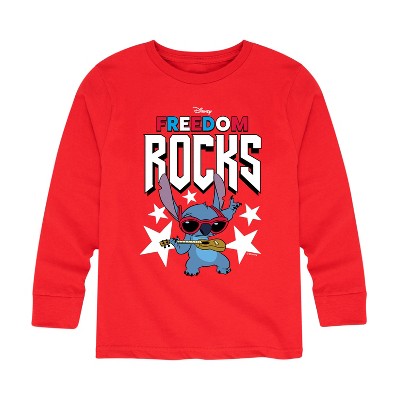 Lilo & Stitch - Freedom Rocks - Youth Short Sleeve Graphic T-Shirt - Celebrate the ohana with Lilo & Stitch graphic apparel, blending new visuals with classic heartwarming moments featuring Lilo, Stitch, and the bonds of family.