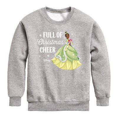 Disney Princess - Full Of Christmas Cheer Cinderella - Youth Crew Fleece Sweatshirt - Add a touch of magic to your wardrobe with this graphic apparel featuring iconic Disney designs. Showcasing beloved characters and classic imagery, each piece combines nostalgic charm with modern style—perfect for Disney fans of all ages. Whether you're headed to the parks or just adding whimsy to your everyday look, these graphics bring the magic to life.