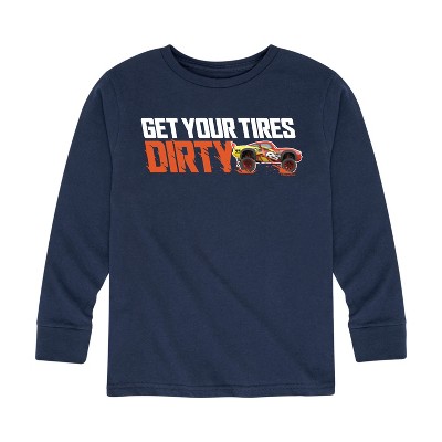 Disney's Cars - Get Your Tires Dirty - Boy's Toddler And Youth Short Sleeve Graphic T-Shirt - Hit the road in style with Cars graphic apparel, featuring bold and colorful designs of Lightning McQueen, Mater, and the entire racing crew. Each piece captures the high-speed excitement, friendship, and charm of Radiator Springs, bringing Pixar’s beloved automotive world to life. Perfect for fans of all ages who love adventure, racing, and heartwarming moments from the Cars universe, this collection adds fun and energy to any wardrobe.