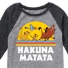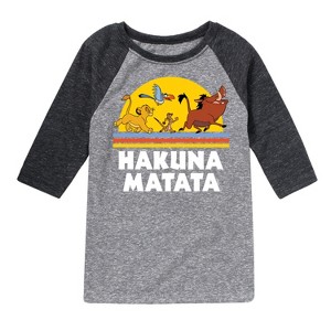 The Lion King - Hakuna Matata - Sunshine - Toddler & Youth Raglan Graphic T-Shirt - Add a touch of magic to your wardrobe with this graphic apparel featuring iconic Disney designs. Showcasing beloved characters and classic imagery, each piece combines nostalgic charm with modern style—perfect for Disney fans of all ages. Whether you're headed to the parks or just adding whimsy to your everyday look, these graphics bring the magic to life.