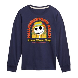 Nightmare Before Christmas - Halloweentown Beach - Local Ghouls Only - Sun Sand & Scares - Toddler And Youth Long Sleeve Graphic T-Shirt - Add a touch of magic to your wardrobe with this graphic apparel featuring iconic Disney designs. Showcasing beloved characters and classic imagery, each piece combines nostalgic charm with modern style—perfect for Disney fans of all ages. Whether you're headed to the parks or just adding whimsy to your everyday look, these graphics bring the magic to life.