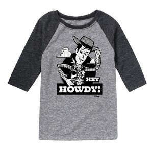 Toy Story - Hey Howdy - Toddler & Youth Raglan Graphic T-Shirt - Add a touch of magic to your wardrobe with this graphic apparel featuring iconic Disney designs. Showcasing beloved characters and classic imagery, each piece combines nostalgic charm with modern style—perfect for Disney fans of all ages. Whether you're headed to the parks or just adding whimsy to your everyday look, these graphics bring the magic to life.