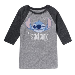 Disney - Lilo & Stitch - Pastel Cutie - Toddler & Youth Raglan Graphic T-Shirt - Add a touch of magic to your wardrobe with this graphic apparel featuring iconic Disney designs. Showcasing beloved characters and classic imagery, each piece combines nostalgic charm with modern style—perfect for Disney fans of all ages. Whether you're headed to the parks or just adding whimsy to your everyday look, these graphics bring the magic to life.
