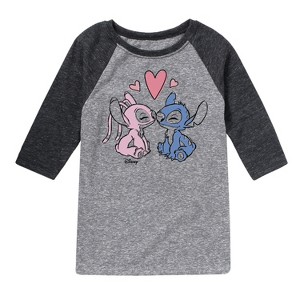 Disney - Lilo & Stitch - Angel & Stitch Share Kisses - Toddler & Youth Raglan Graphic T-Shirt - Add a touch of magic to your wardrobe with this graphic apparel featuring iconic Disney designs. Showcasing beloved characters and classic imagery, each piece combines nostalgic charm with modern style—perfect for Disney fans of all ages. Whether you're headed to the parks or just adding whimsy to your everyday look, these graphics bring the magic to life.